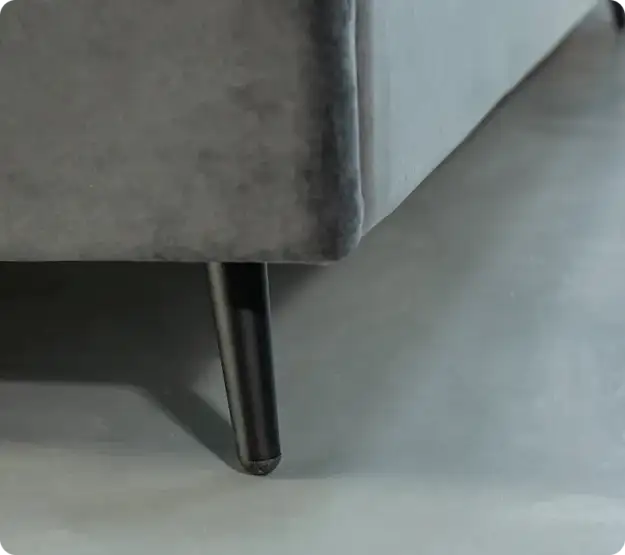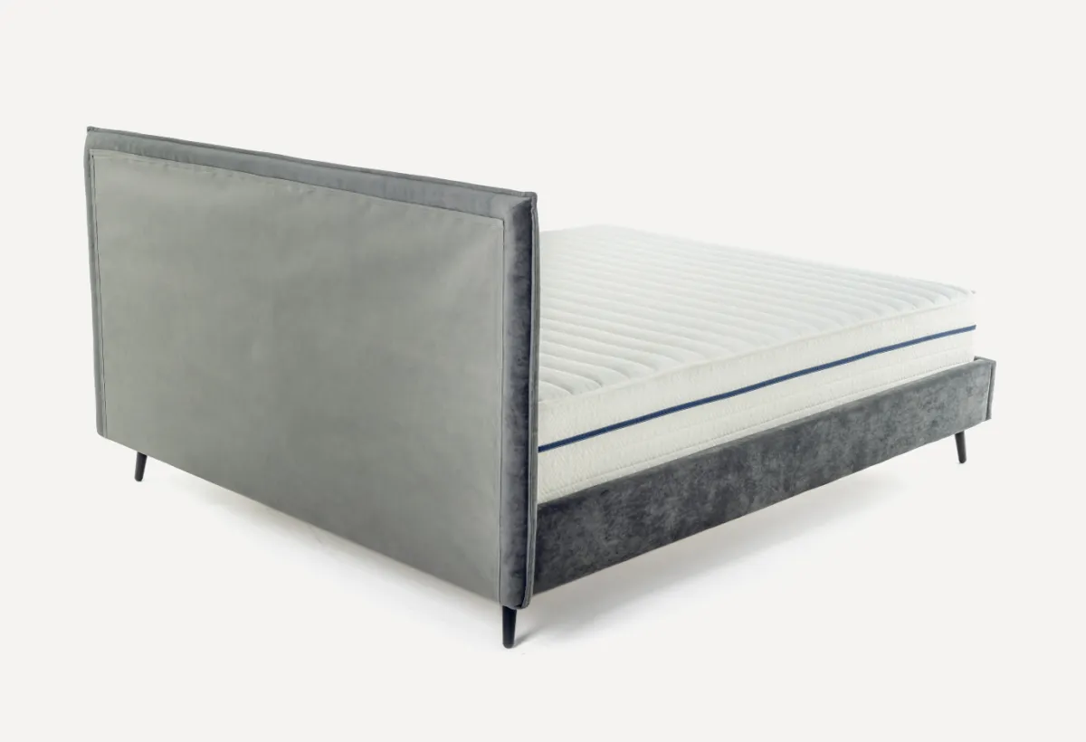Просвет над полом в 150 мм обеспечивает достаточное пространство для уборки, включая использование робота-пылесоса. Заглубление матраса на 50 мм и высота по краю царги 335 мм делают кровать удобной и практичной. Все соединения кровати выполнены с использованием болтов, что гарантирует прочность и надёжность конструкции. Обратная сторона изголовья изготовлена из прочной и долговечной технической ткани, обеспечивая дополнительную износостойкость.