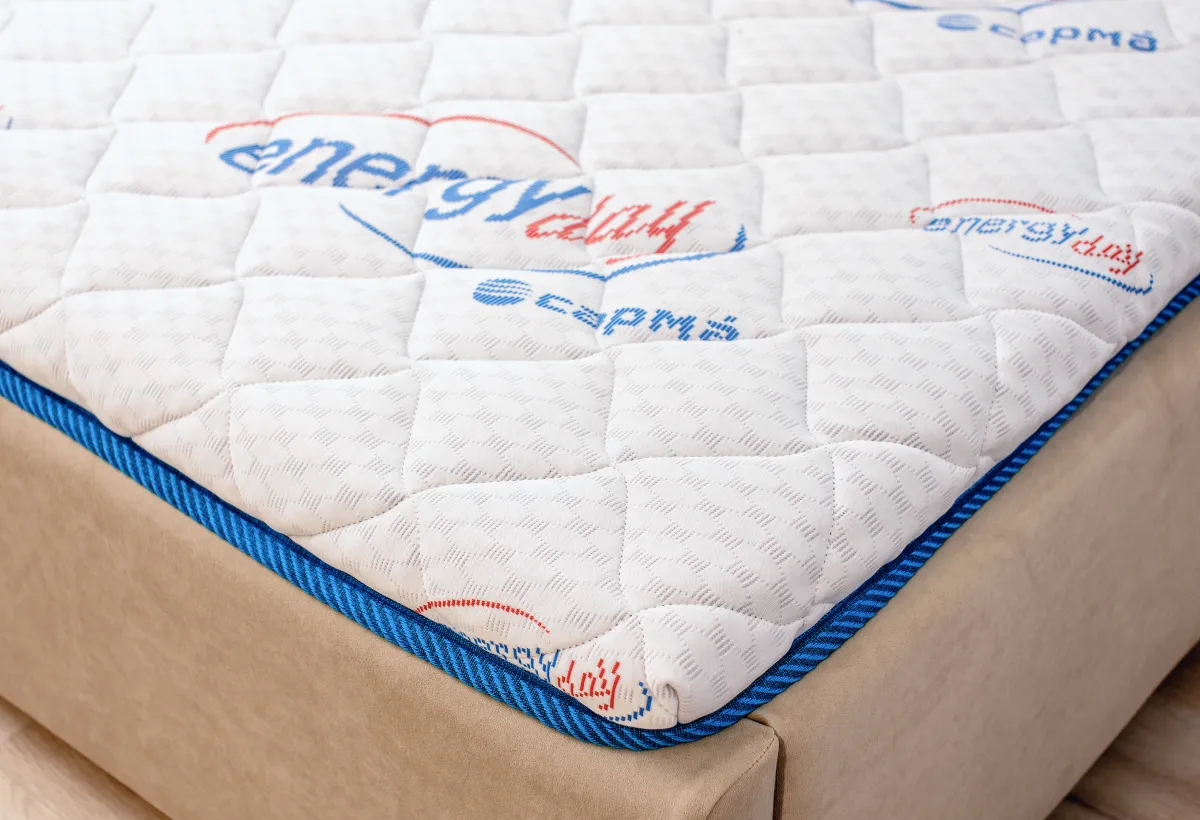 Представляем вам новый матрас, который сочетает в себе стиль и функциональность. Его уникальный чехол, выполненный из трикотажа Energy Day, стеганого на объемном синтепоне, и жаккардовой рогожки голубого цвета, придает матрасу эстетичный вид и обеспечивает долговечность. Такое сочетание материалов делает его идеальным дополнением к любому интерьеру.