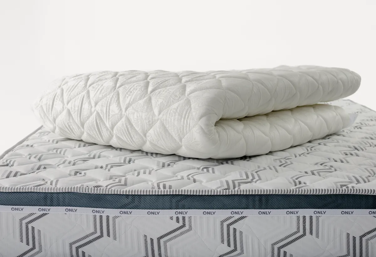 Чехол топпера выполнен из приятного на ощупь трикотажа, простёганного с объёмным Холлконом.